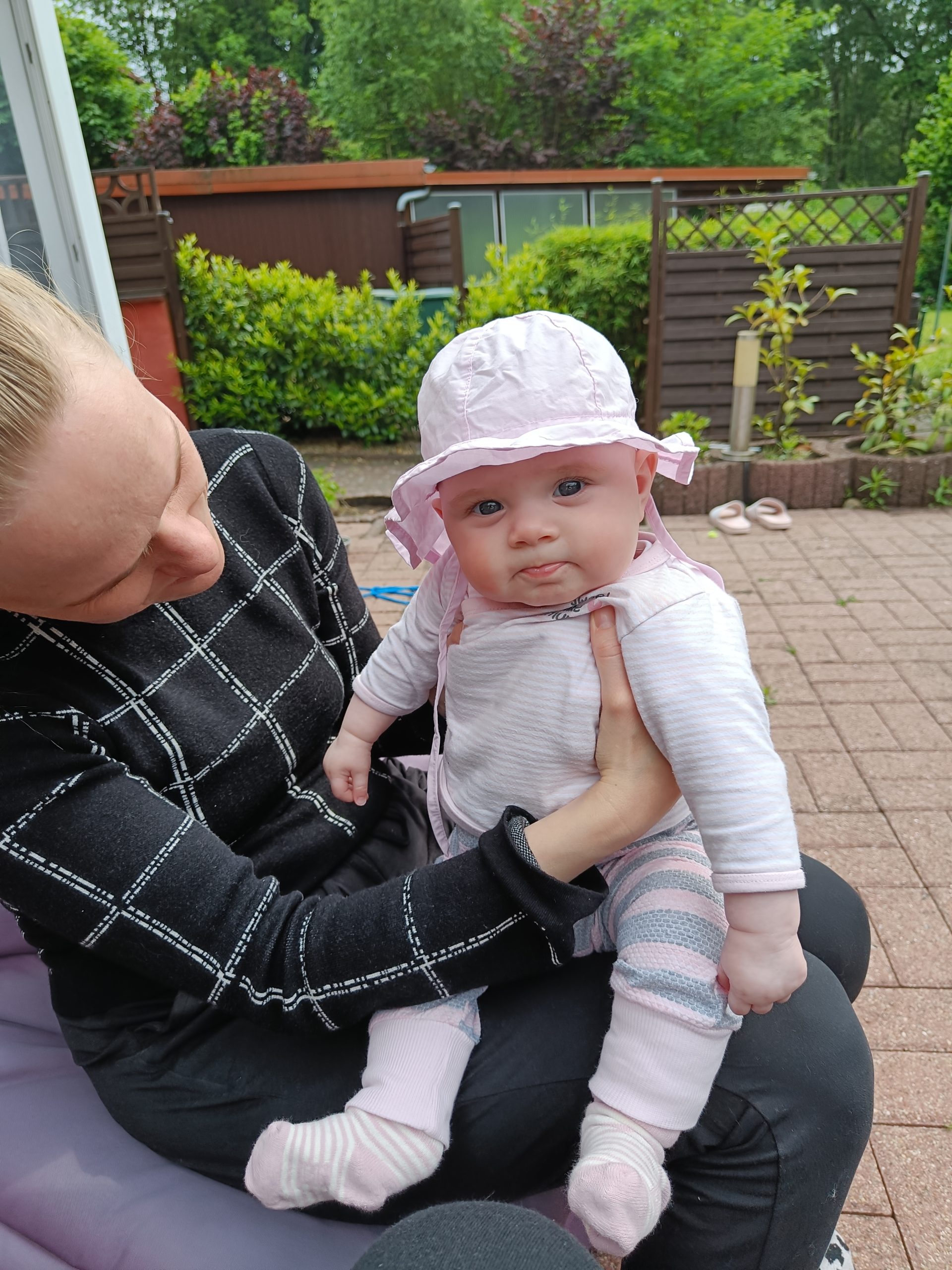 01.06.2022 Aryana - Von Anfang an Opa, Oma und Ulrike waren wieder da. Opa hat meinen Hochstuhl aufgebaut. Ulrike hat mit Loki gespielt. Die bleibt jetzt 2 Tage bei uns.