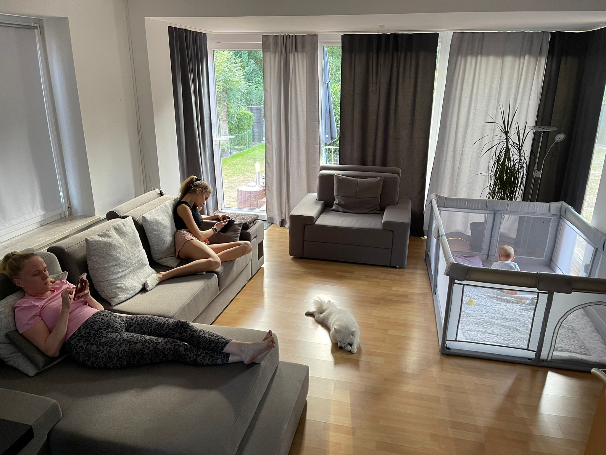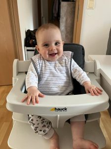 Manchmal chillen wir alle zusammen: Mama, Sibel, Loki und ich. Dann hat Mama mich wieder beim Essen gefilmt. Ich habe so Bio Knusper Bretzel und dann Avocado probiert. Ist schon toll was es alles für mich gibt. Und meine Flasche könnte ich auch alleine trinken.