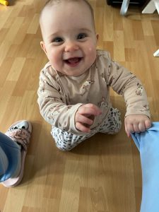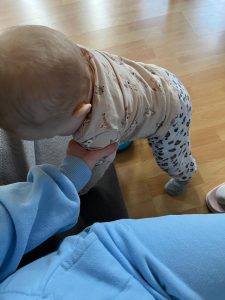 Ich kann klettern! Mama hat erzählt: „Mausi ist vorhin alleine aufs Sofa gekrabbelt. Die kann jetzt diese Sofa Stufen hochklettern. War ganz oben. Mitte. Aufm Sofa. Ich war natürlich dahinter wenn sie nach hinten wegrutscht. Dachte was macht die denn jetzt. Stufe für stufe“