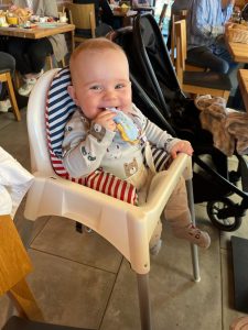 Heute war ich mit Mama, Papa und Sibel im Restaurant. Da habe ich zum ersten Mal meinen eigenen Stuhl bekommen! Toll – Oder?