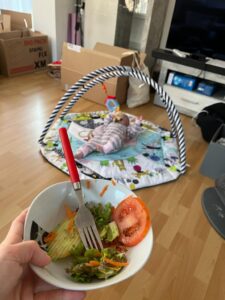 04.05.2022 Aryana - Von Anfang an Mama ißt Abendbrot und ich spiele mal etwas in meiner Burg. Macht Spaß und ich bin gut drauf.