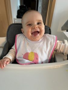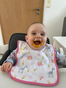 Mama hat mich mal wieder beim Essen und beim Schlafen fotografiert. So sieht übrigens mein Essen aus – natürlich erst püriert. Das meiste landet auch bei mir im Mund.