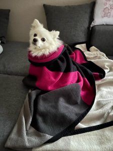 Mir geht es wieder gut. Ich habe durchgeschlafen und bin munter. Mama hat auch nur noch leicht erhöhte Temperatur – hustet aber noch doll. Loki bewacht sie. Dafür ist Mama sogar mal ganz kurz mit ihm vor die Tür gegangen. Wird also ganz langsam besser.