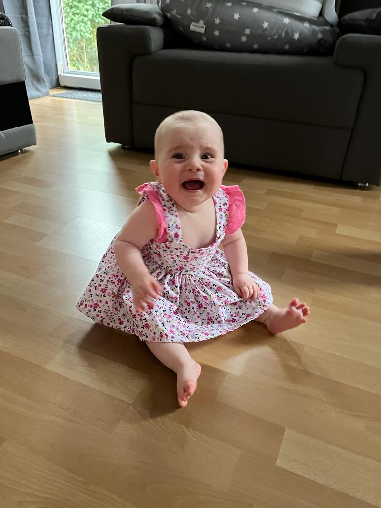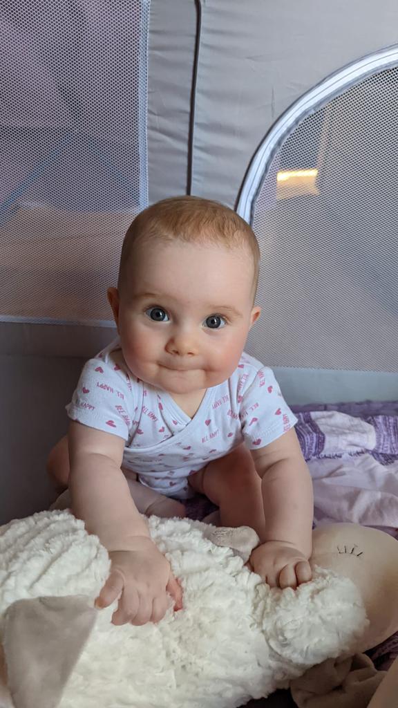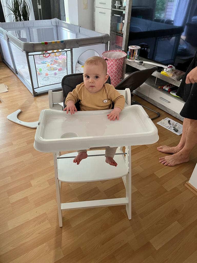 08.08.2022 Aryana - Von Anfang an Seht ihr, wie ich in meinem Hochstuhl sitzen kann. Bald kann ich ganz alleine essen! Einkaufen waren wir auch wieder. Und ich habe natürlich wieder mit meinen Bauklötzen gespielt.