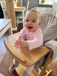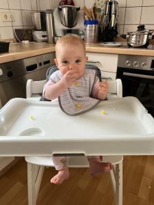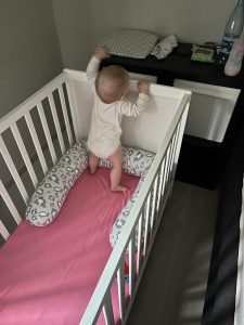 Ich kann nun ja aufstehen und mir Dinge von Mamas Nachtschrank nehmen. Findet die nicht gut.