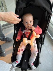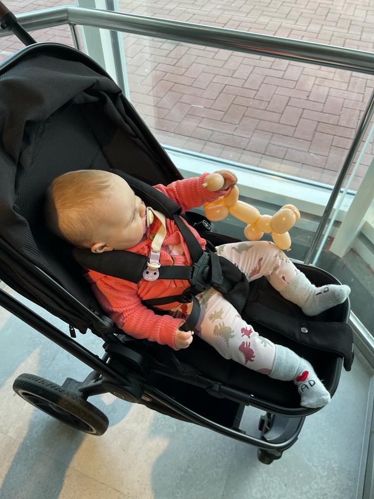Wir waren heute bei der Eröffnung von einem Möbelgeschäft. Da war ein sehr großer Mann und hat mir ein Luftballon-Tierchen gemacht. Das durfte ich aber nicht behalten – Das fand ich dann nicht gut.