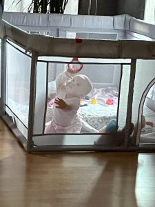 09.08.2022 Aryana - Von Anfang an Mama macht diese Bügel immer weg. Dabei könnte ich mich daran so schön hochziehen und dann stehen. Dauert nicht mehr lange … dann mach ich das einfach Morgens – nach dem Aufwachen – spiele ich immer mit Mama im Bett. Das ist schön!