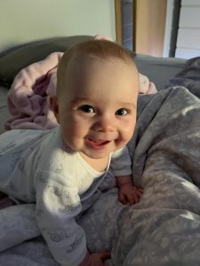 10.08.2022 Aryana - Von Anfang an Morgens spielen wir immer im Bett. Dann bin ich gerade wach und gut gelaunt. Tagsüber spiele ich dann viel in meinem „Stall“ und habe dort viele Spielzeuge.