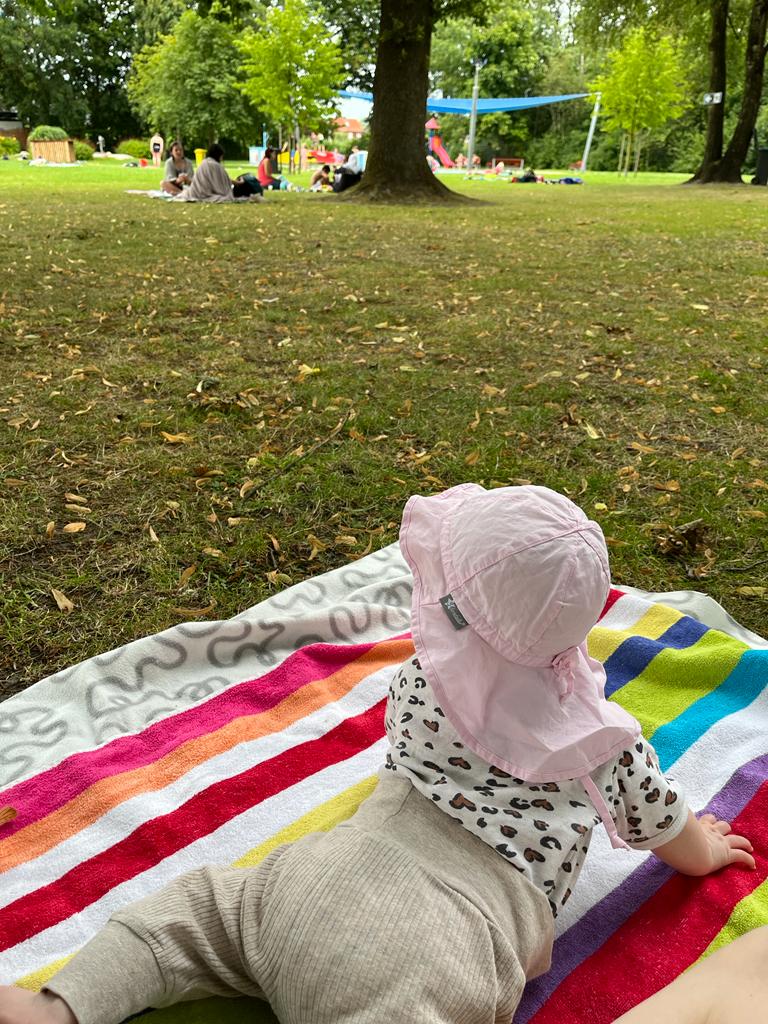 Heute waren wir in Emden im Schwimmbad. Mama und Ulrike haben eine Runde geschwommen und ich habe auf meiner Decke gespielt und geschlafen.