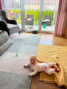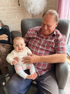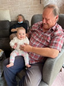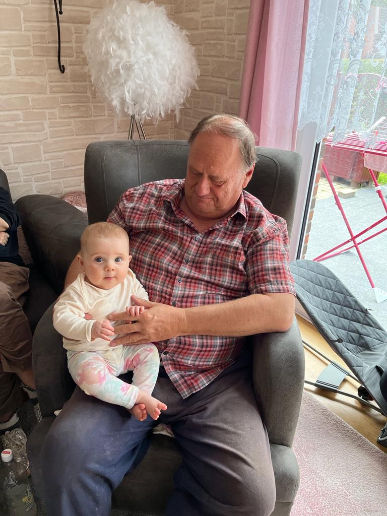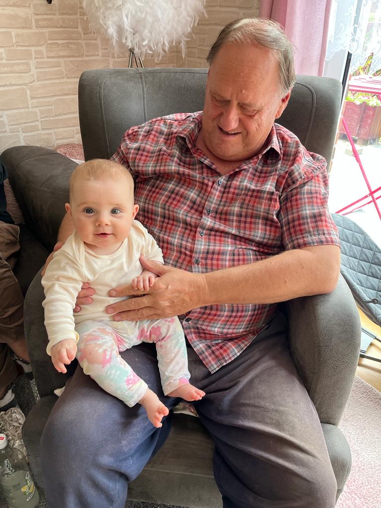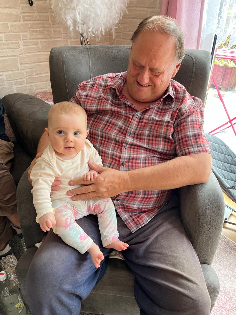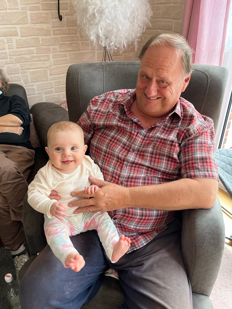 Opa war natürlich wieder da. Die ersten Tage wollte ich ja nicht bei ihm auf den Arm und habe dann immer gleich geweint. Inzwischen haben wir uns angefreundet und ich bin sogar gerne bei ihm. Da war der ganz froh.