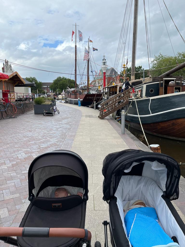 Wir waren auch noch in der Stadt spazieren mit Jessica und ihrem kleinen Baby. Da sind wir an vielen Schiffen vorbeigekommen.