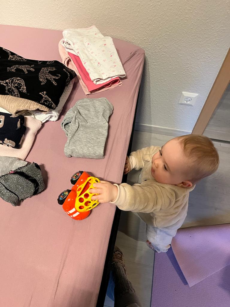 15.12.2022 Aryana - Von Anfang an Heute morgen gleich nach dem Aufwachen habe ich einmal das ganze obere Stockwerk erkundet. Da gibt es so viel zu sehen. Später waren wir dann wieder in der Krabbelgruppe. Da gibt es jede Menge Spielzeug.