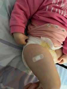 Heute morgen musste ich wieder zum Doktor. Der hat mich ins Bein gepiekt. Impfen nennt der das.