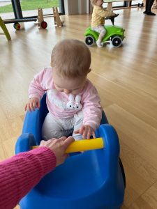 Heute waren wir wieder in der Krabbelgruppe. Die haben da so tolle Spielzeuge. Ganz andere wie bei mir zu Hause. Und es macht Spaß mit den anderen Kindern zu spielen.