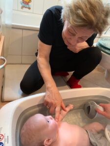 18.03.2022 Aryana - Von Anfang an Ich habe mit Babaanne gebadet. Hat Spaß gemacht. Loki guckt immer zu. Im Moment wohne ich hier mit 4 Erwachsenen: Mama, Papa, Babaanne und Sibel. Da habe ich jede Menge Trubel um mich rum.