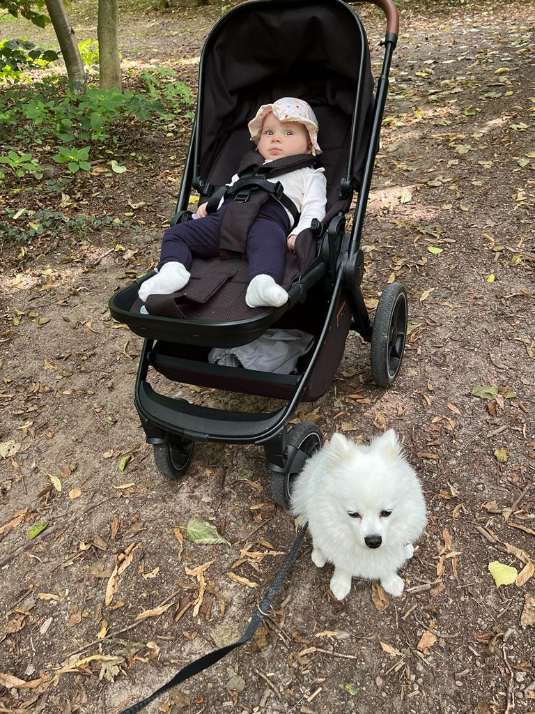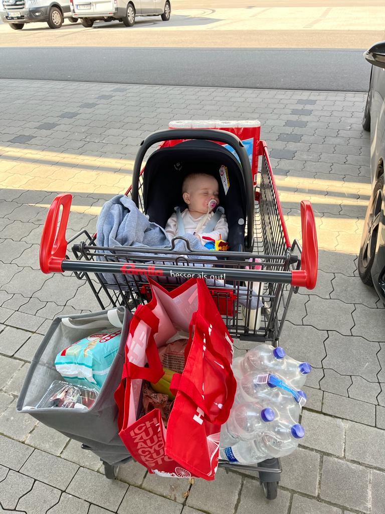 22.08.2022 Aryana - Von Anfang an Wir waren viel draußen. Erst beim Einkaufen und dann mit Loki spazieren. Beim Einkaufen schlaf ich lieber. Ist mir zu langweilig.