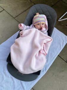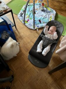 Heute habe ich Geburtstag. Ich bin schon 3 Monate alt. Zur Feier des Tages durfte ich eine Zeit lang draußen schlafen. Und irgendwie muss ich den Hund ja auch mal etwas beachten. Hab ihn bisher immer ignoriert.