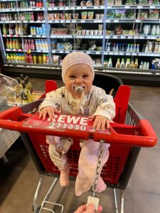 Mama sagt: „hat ganzen Rewe unterhalten, So konnte sie ja alles gucken und jedem winken und kichern“. Das bin ICH!!!!