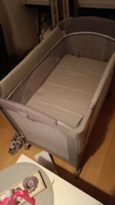 Opa hat dann abends noch ein Reise-Kinderbett von BabyOne abgeholt und schon mal aufgebaut.