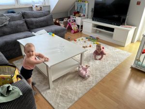 Heute wieder ein Abenteuer. Wir waren bei Arbeitskollegen von Mama zu Besuch. Die hatten auch ein Baby, das aber etwas älter als ich ist. Der hatte ganz anderes Spielzeug als ich. Ich war das alles ausprobiert. Vielleicht bekomme ich ja auch so etwas? Auf dem Rückweg dann wieder das gleiche Spiel: Wir sind im Stau stecken geblieben und mussten erst mal umdrehen, um dann später zu fahren. Verkehr in Hamburg ist wohl wirklich fürchterlich!
