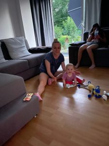 Abends dann habe ich beschlossen, dass man im Sitzen ja viel besser spielen kann und habe mich mal wie alle anderen auf meinen Popo gesetzt. Plötzlich waren alle ganz aufgeregt.