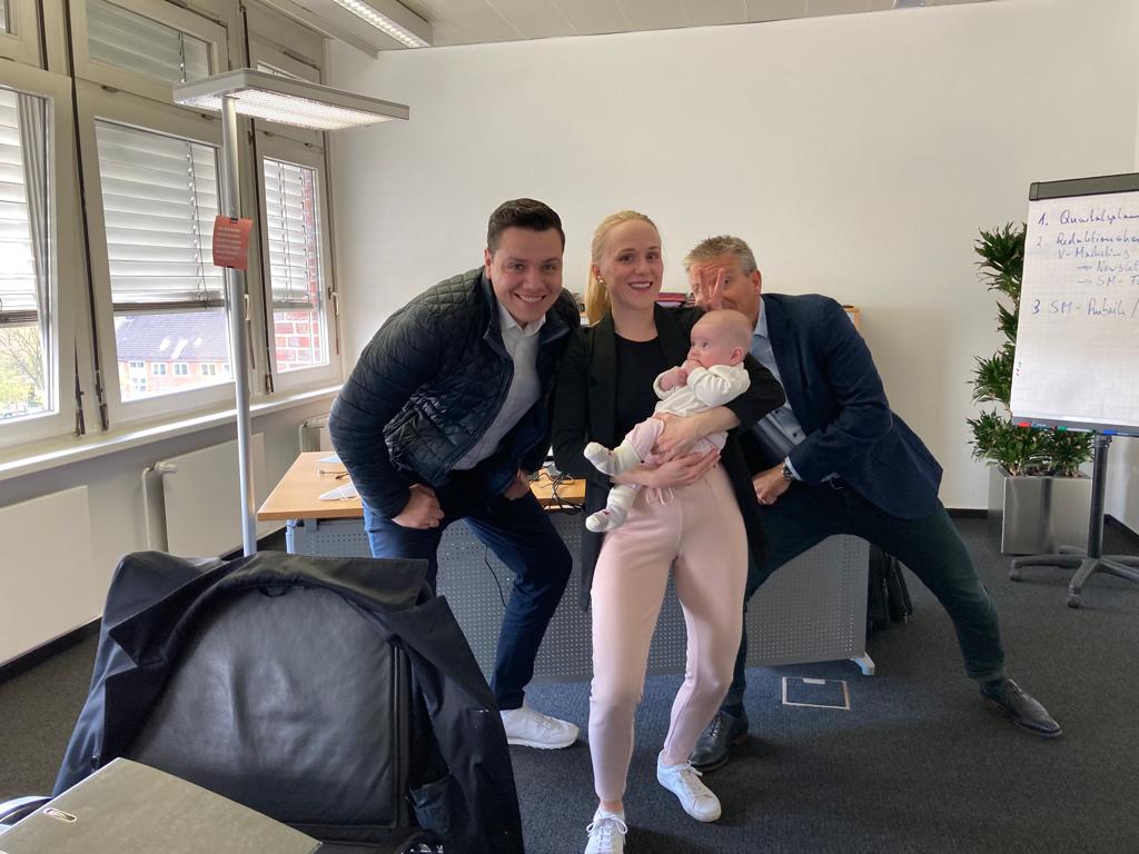 27.04.2022 Aryana - Von Anfang an Ich war heute mit Mama auf deren Arbeitsstelle bei Ihren Kollegen. Der eine ist auch junger Papa und hat mich auf den Arm genommen. Haben mich alle bewundert. Oma und Opa fliegen heute wieder nach Hause.