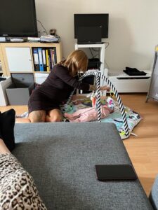 Dann war noch eine Freundin von Mama da: Jessica. Die bekommt auch bald ein Baby. Die hat schon mal mit mir geübt.