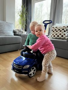 Wir waren auch beim Kinderarzt – der hat mich wieder gepieckst. Gabi, Martin und Enkel waren auch zu Besuch und wir haben zusammen gespielt.