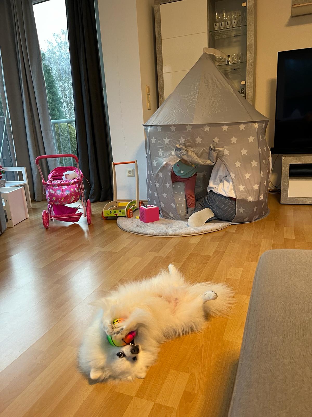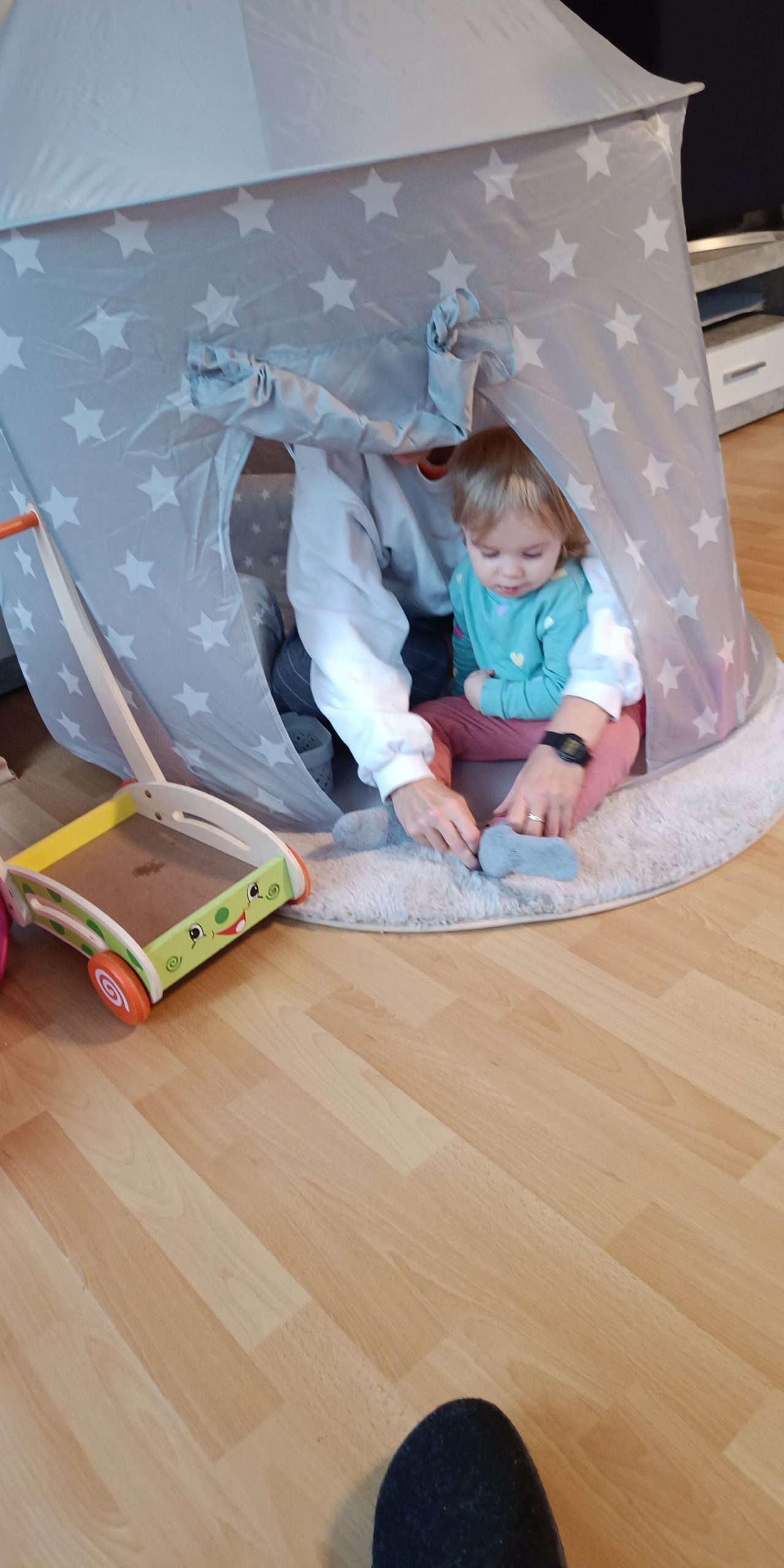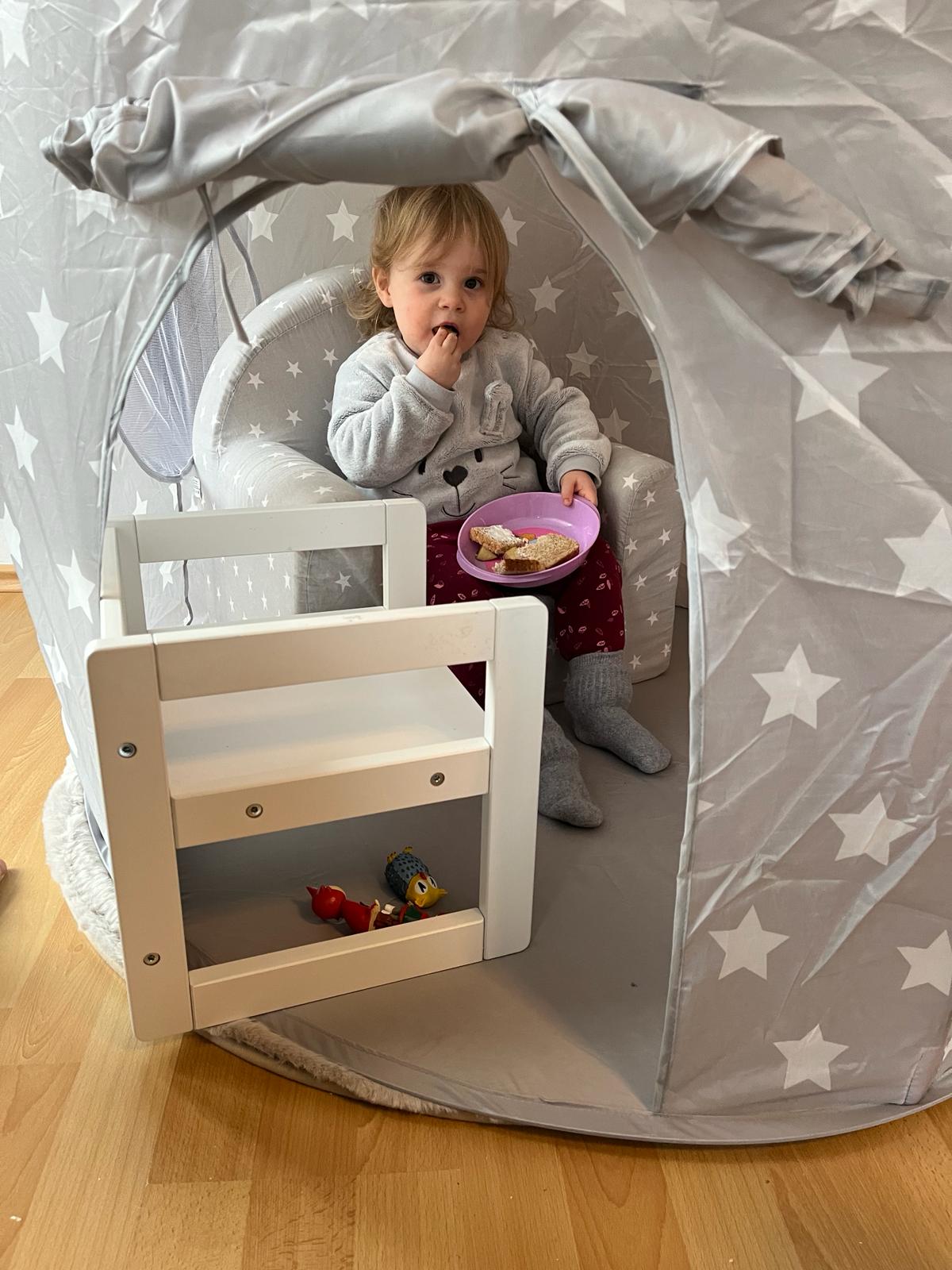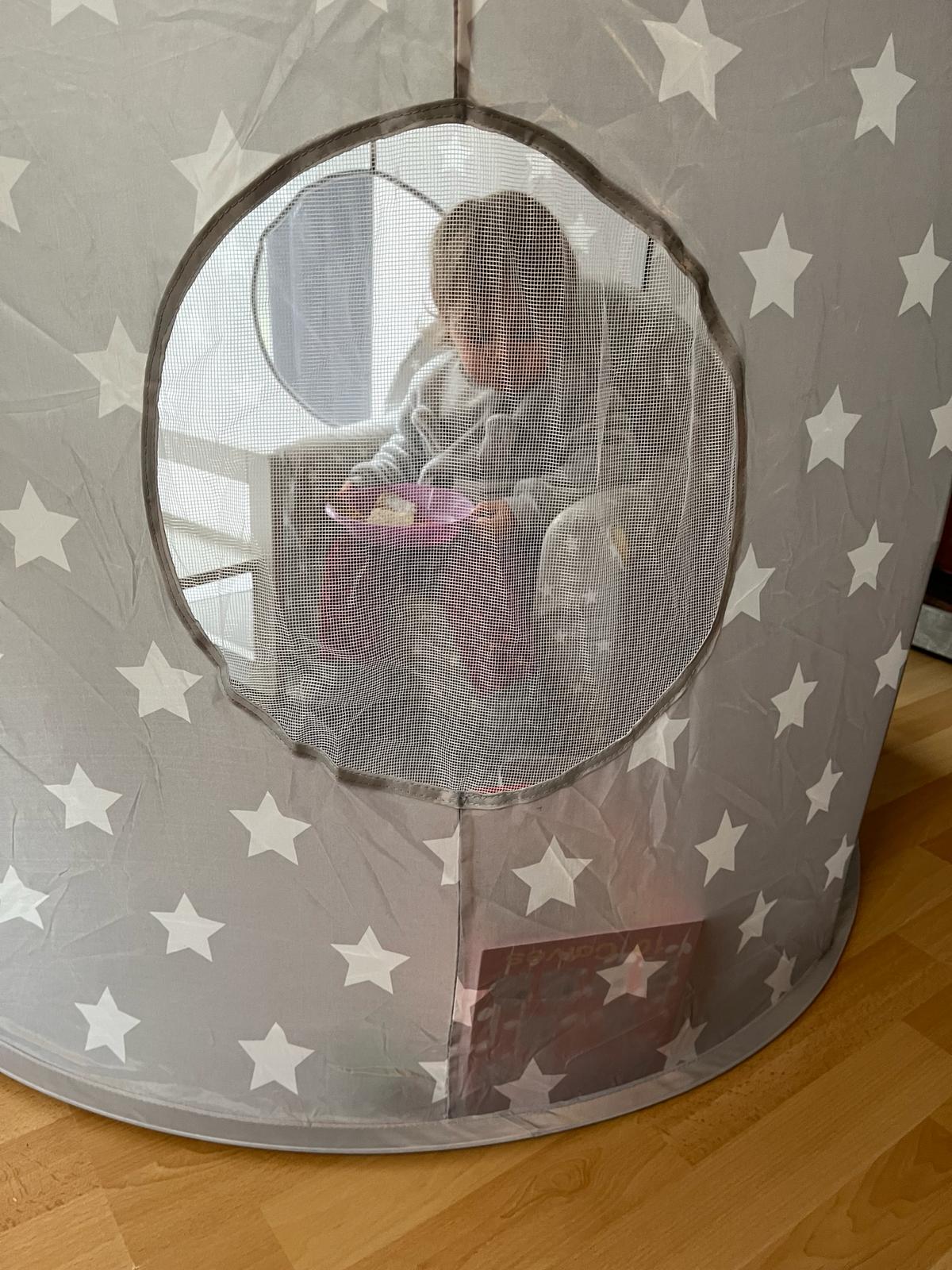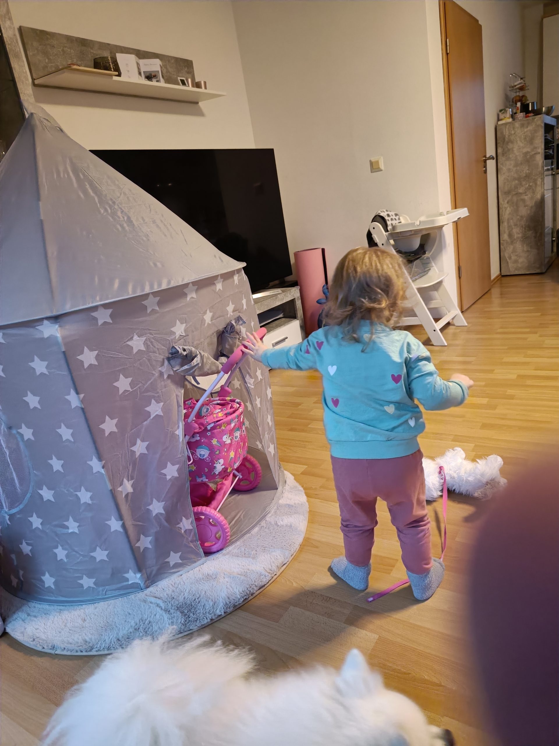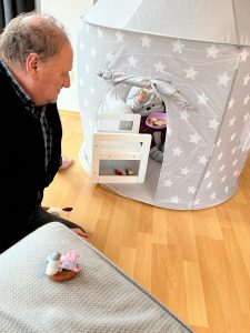 Ich habe jetzt ein Zelt. Da kann ich mich verstecken, drin essen, lesen oder Musik hören (mit meiner Tonie Box). Opa und Oma waren auch wieder da.