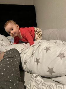 Morgens kuschele ich gern mit Mama im Bett.