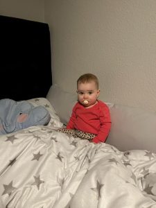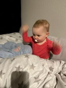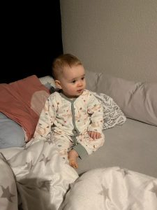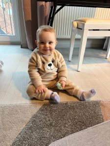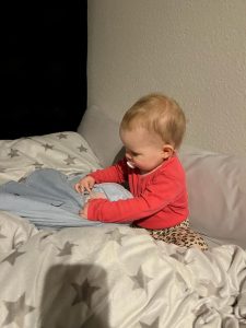 Ich versuche immer wieder zu laufen. Das ist ja viel besser als dauernd auf dem Boden zu krabbeln. Irgendwie wackel ich aber immer noch. Aber es wird von Tag zu Tag besser.