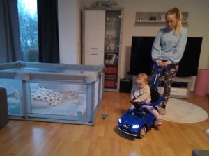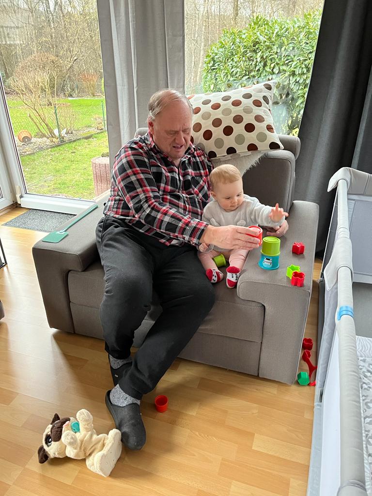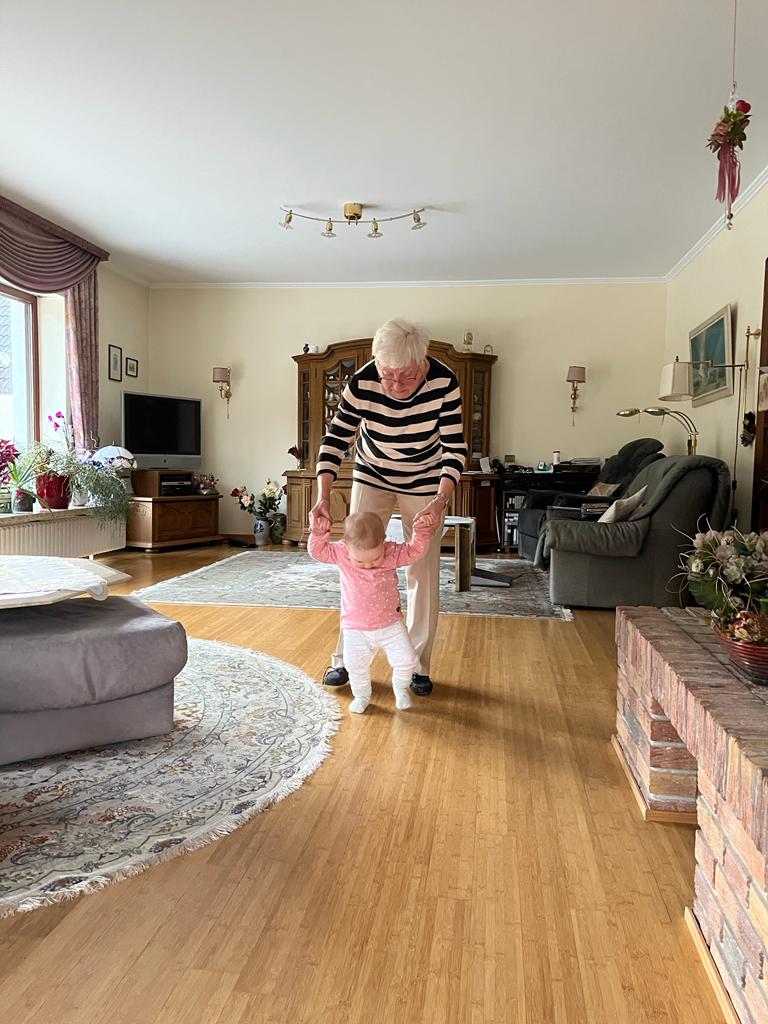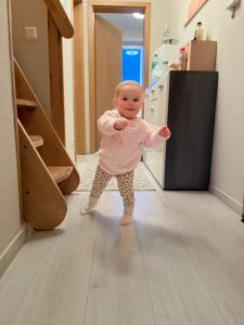 KW05 30.01.2023-05. Februar 2023 Aryana - Von Anfang an Opa und Oma waren 2 Tage zu Besuch, nachdem alle wieder gesund waren. Da haben wir viel miteinander gespielt und gekuschelt. Wir waren auch bei einer Nachbarin zu Besuch. Die Sache mit dem Laufen geht immer besser und einfacher!