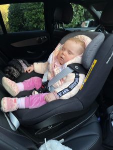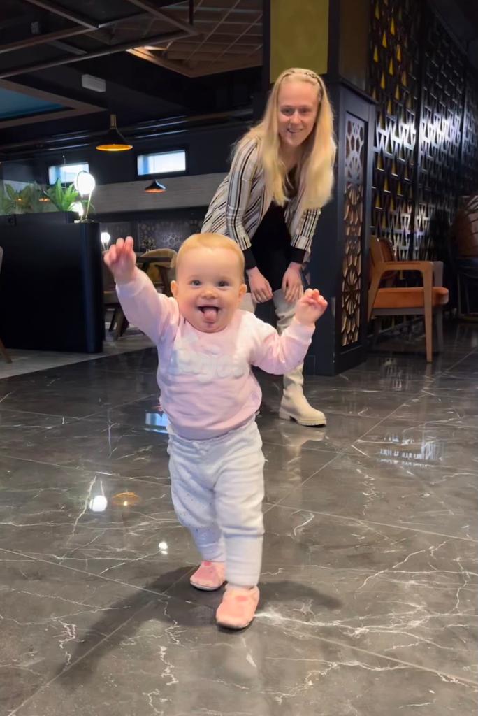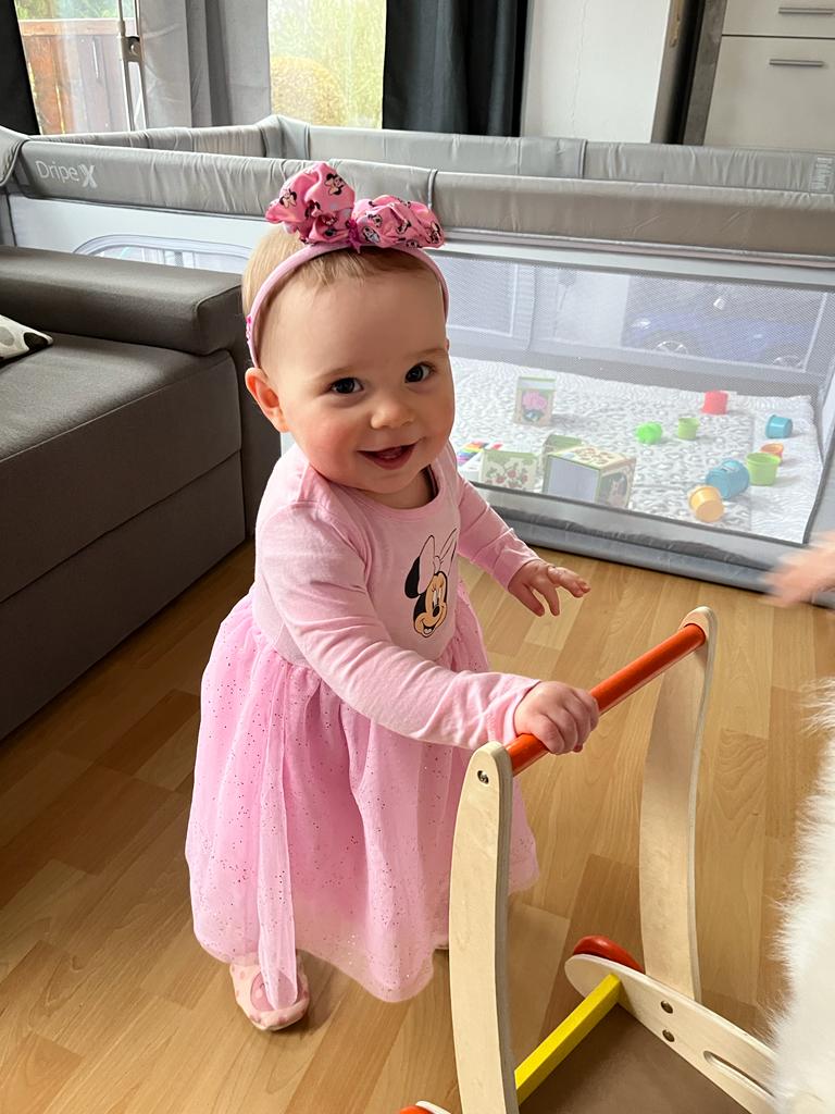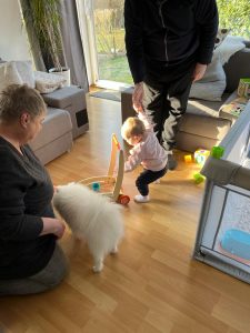 Ich habe Loki in meinem Wagen geschoben. Hinter dem Wagen kann ich schon ganz schnell laufen!