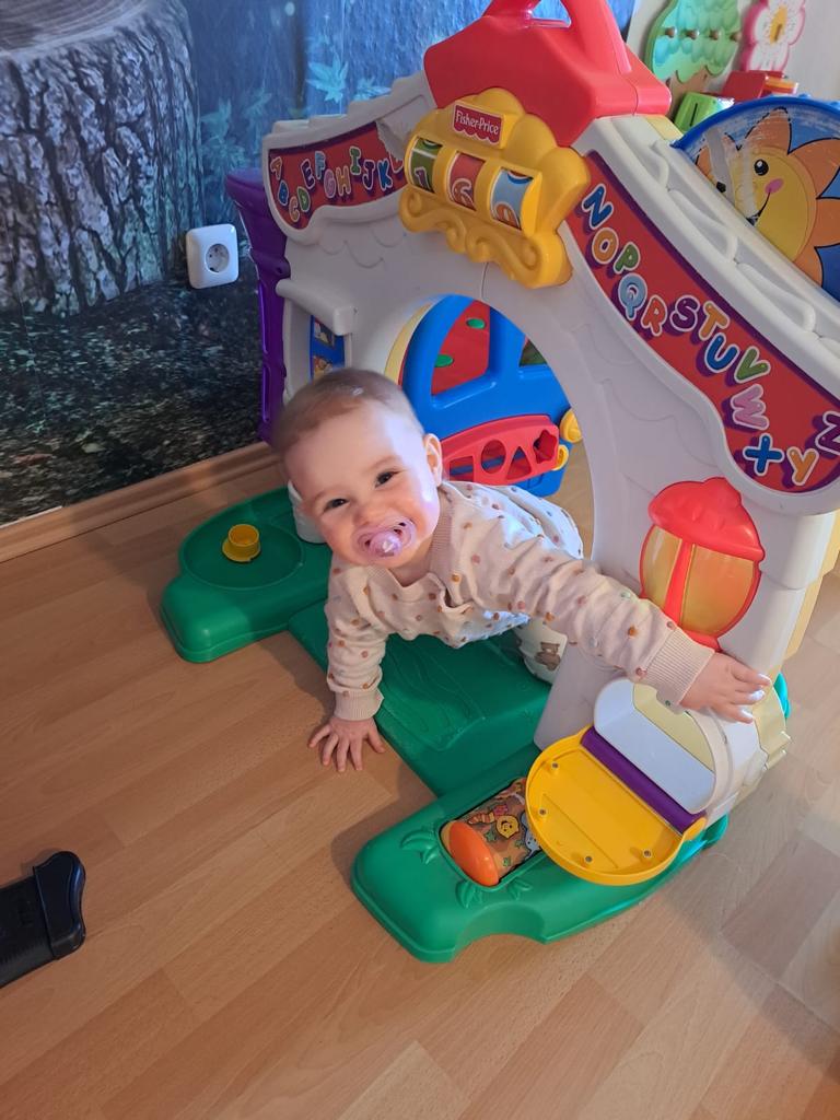 Ich habe auch ein eigenes Spiel- und Schlafzimmer bekommen. Alle meine Spielzeuge und mein Bett sind da drin. Ist das nicht toll?