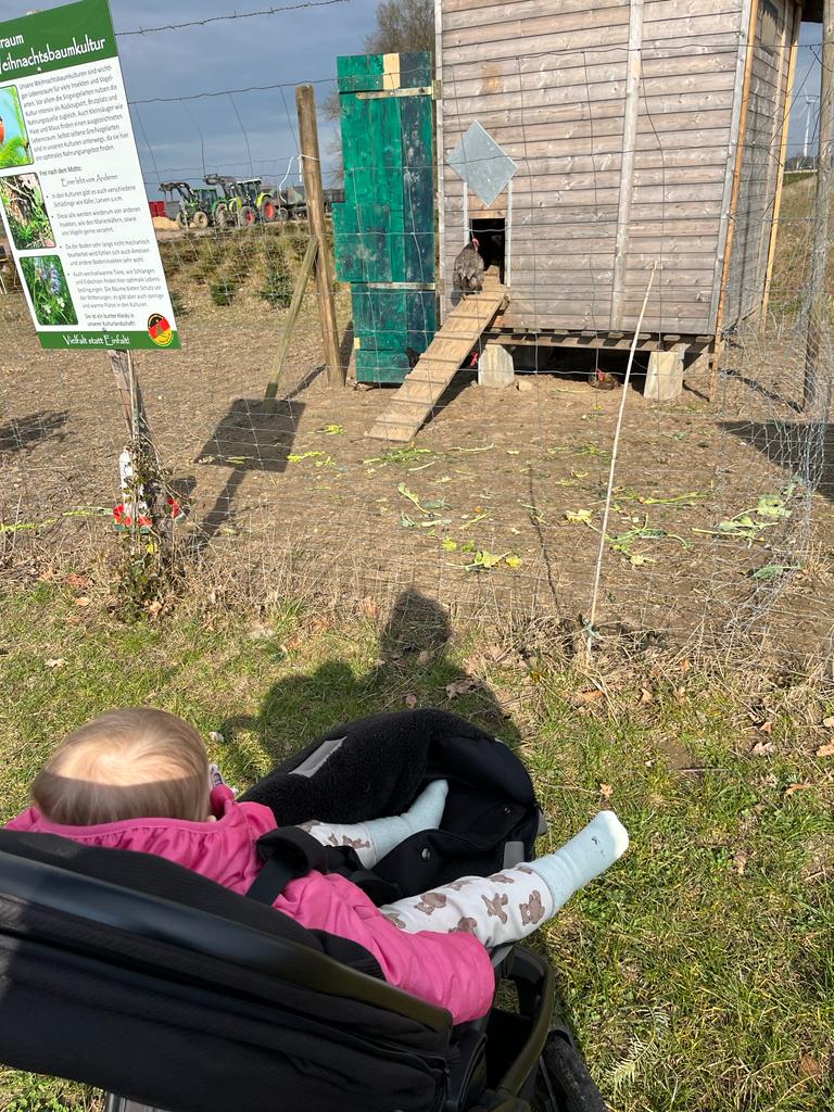 Wir sind in der Woche auch noch oft spazieren gewesen. Da kann ich auch mal aus meinem Kinderwagen raus und selbst ein wenig laufen. Am meisten macht es Spaß, wenn ich dabei mit Loki spielen kann.