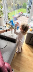 KW13 25 – 31. März 2024 Aryana - Von Anfang an Immer noch viel schlechtes Wetter. Da muss ich viel drinnen spielen. Wir waren aber auch im Spiel-Paradies. Da hab ich mit Mama Auto und Motorrad gefahren.