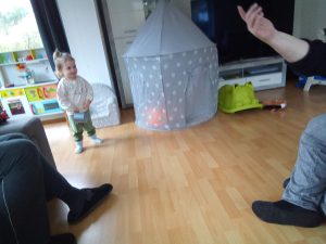 KW14 01 – 07. April 2024 Aryana - Von Anfang an Guckt mal wieviel Spaß es macht in Wasserpfützen zu hüpfen. So viel hat es geregnet. Opa war auch wieder da und hat eine neue Küche für draußen aufgebaut. Da kann ich auch mit Wasser matschen. Auch ein Klettergerüst hat er aufgebaut.