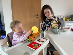 Beim Essen kleckere ich oft. Dann muß ich Abends in die Badewanne. Das macht aber auch Spaß.