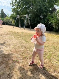 Ganz viel mit Mama gekuschelt und gespielt. Oma und Opa können nicht kommen – die sind im Urlaub auf Mallorca (wo auch immer das ist).