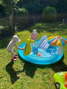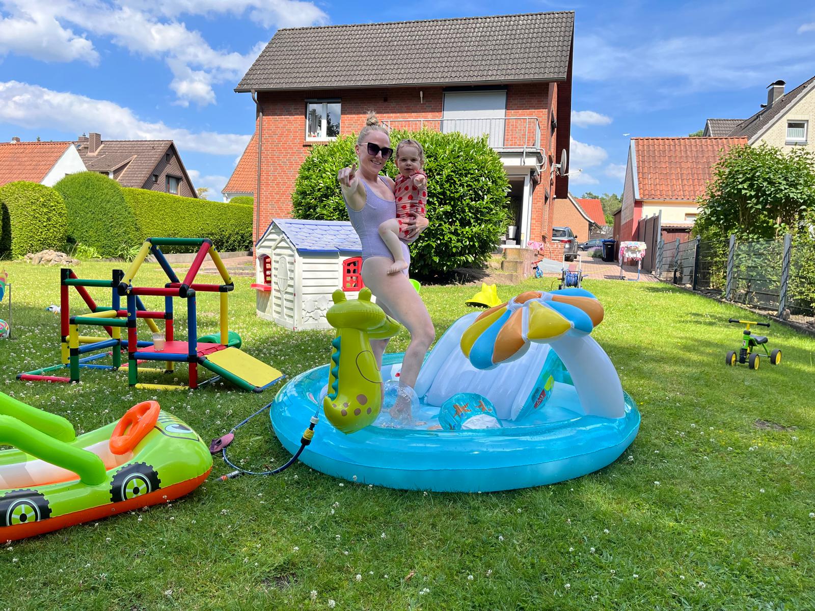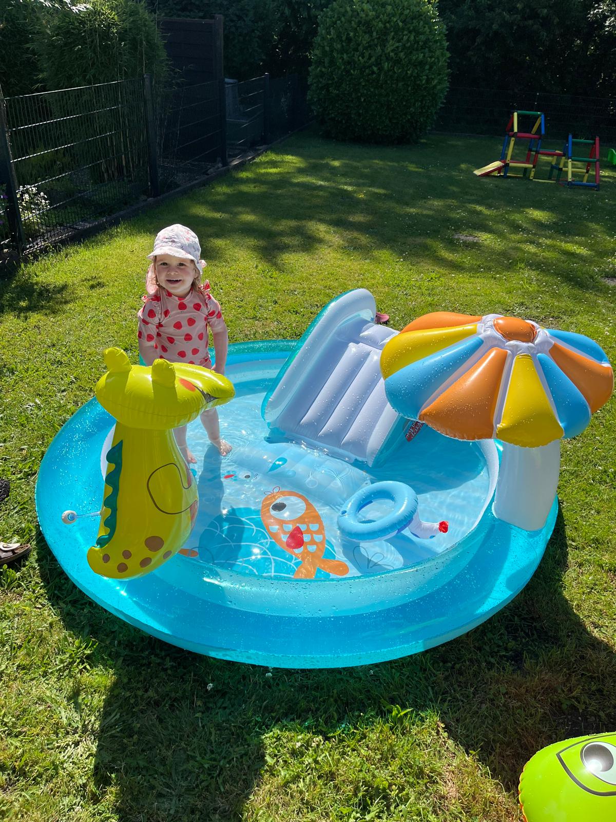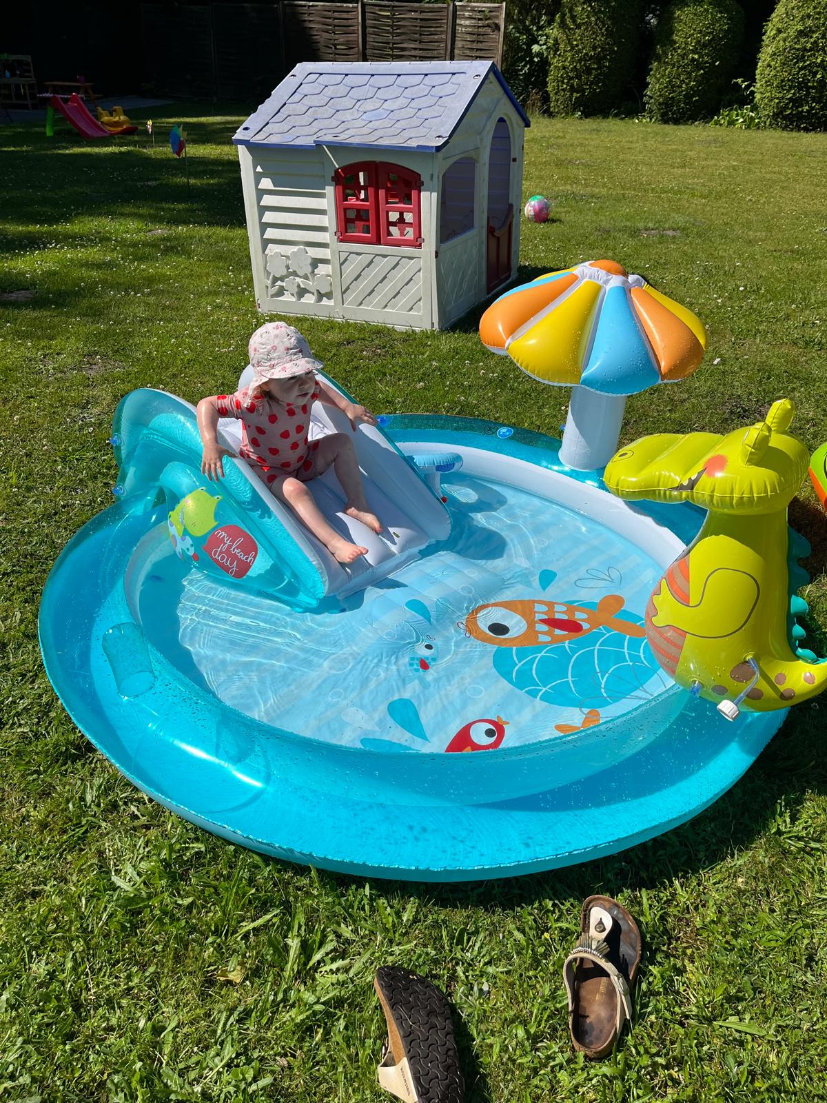 Diese Woche war schönes Wetter. Da konnte ich im Garten in meinem Swimming-Pool baden. Das hat vielleicht Spaß gemacht! Und dann kam ein Paket von Ulrike….