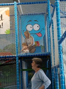 Besonders hat es mir im Oki-Doki-Land gefallen. Da waren viele Spiel- und Klettergeräte und ich habe geklettert (mit Mama) und bin überall rumgerannt und habe besonders die Hüpfgeräte ausprobiert.