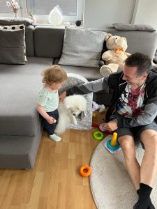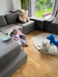 KW32 07 – 13. August 2023 Aryana - Von Anfang an Anfang der Woche war ich noch etwas angeschlagen und musste auch noch mal zum Arzt. Ich konnte nicht in die Kita gehen. Aber ganz langsam hab ich mir wieder jeden Unsinn überlegt und mit Loki gespielt.