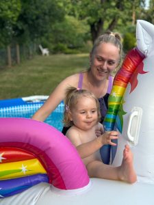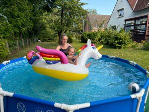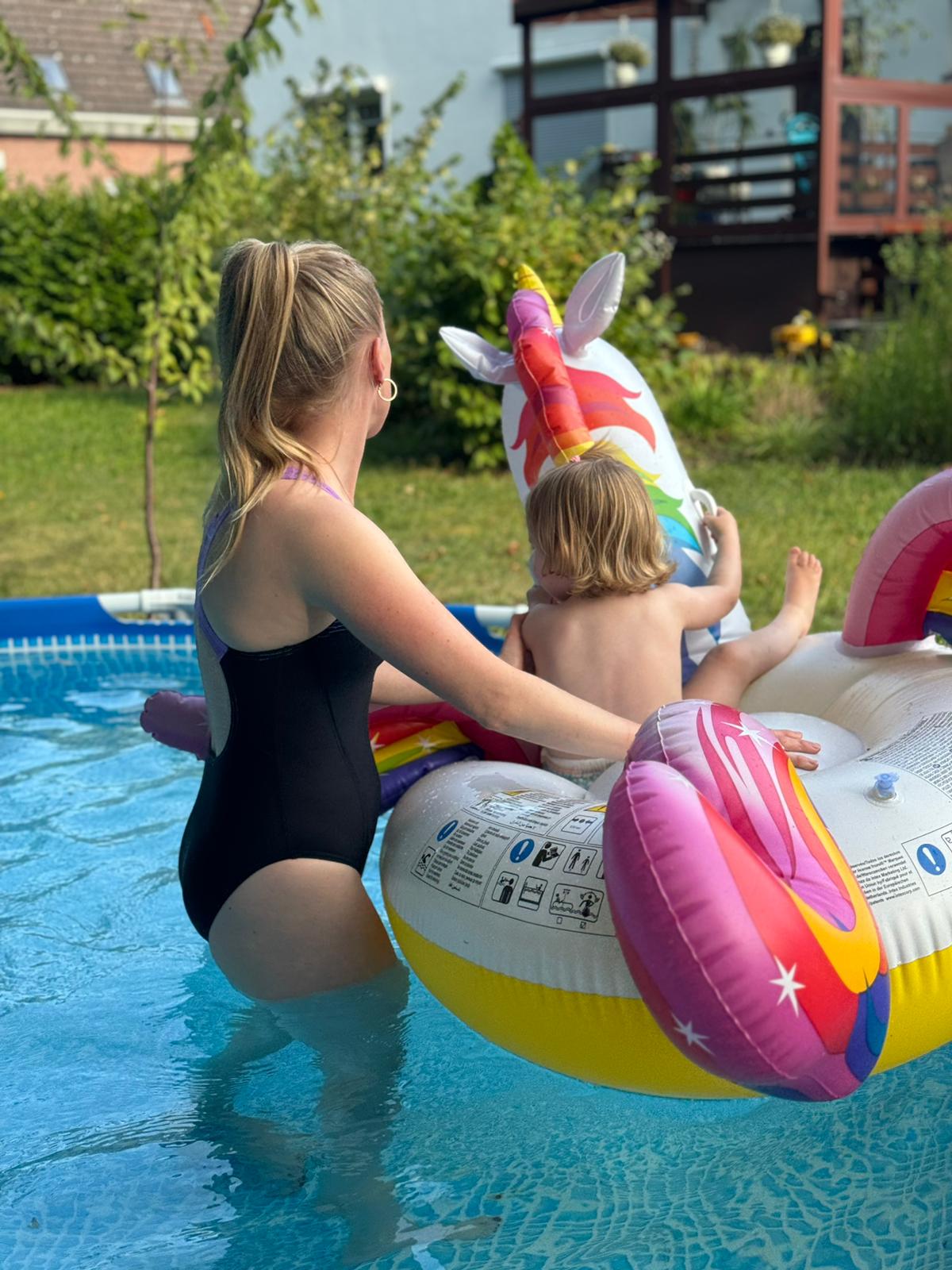 KW36 02. – 08. September 2024 Aryana - Von Anfang an Es war noch immer schönes Wetter und wir waren schwimmen (im Pool und im Schwimmbad). Auch so habe ich mit Wasser im Garten gespielt. Und ganz was tolles: Ich bin mit Papa im Zug nach Hamburg gefahren! Das will ich bald wieder.