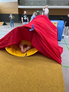 Eine Woche mit Turnen und viel Spielplatz. Ich habe auch einen Sicherheitshelm bekommen, damit ich mir den Kopf nicht stoße, wenn ich mit dem Laufrad ganz schnell fahre.