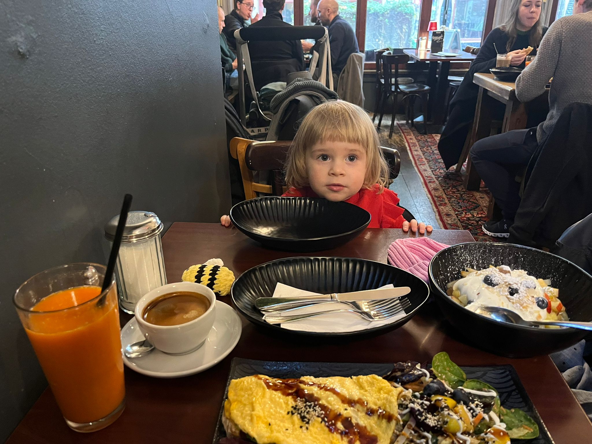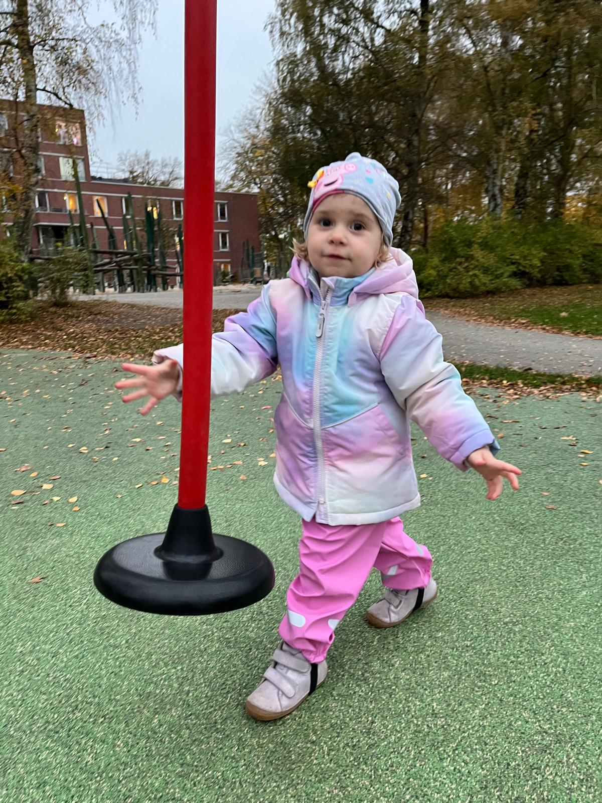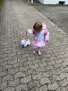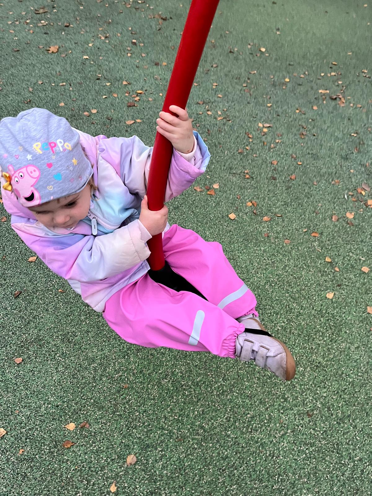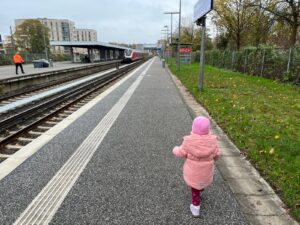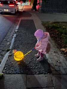 Auf dem Spielplatz und mit der Laterne unterwegs – und wieder Zug gefahren.