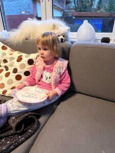 Ulrike und Loki hatten Geburtstag. Da haben wir das „Happy Birthday Lied“ gesungen.